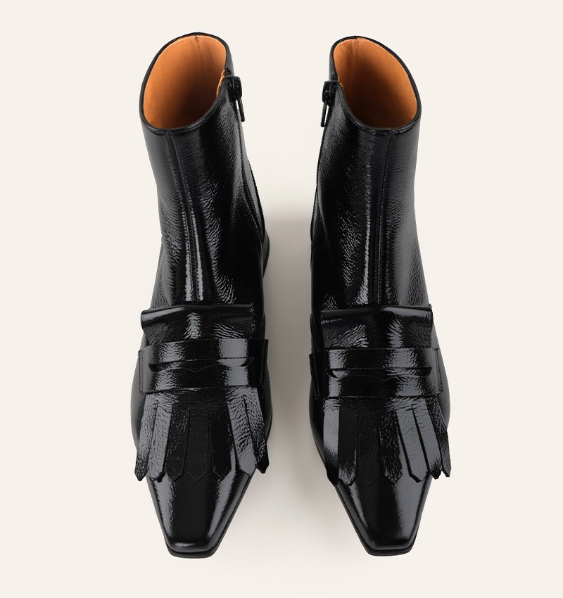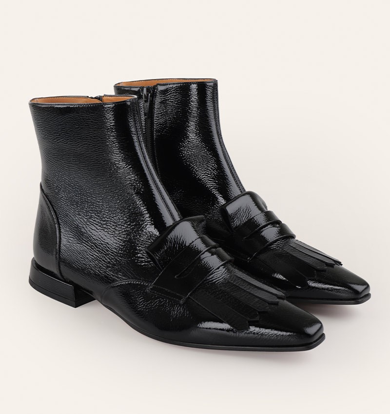Zapięcie na zamek błyskawiczny. Podeszwa skórzana z antypoślizgową gumową częścią na spodzie