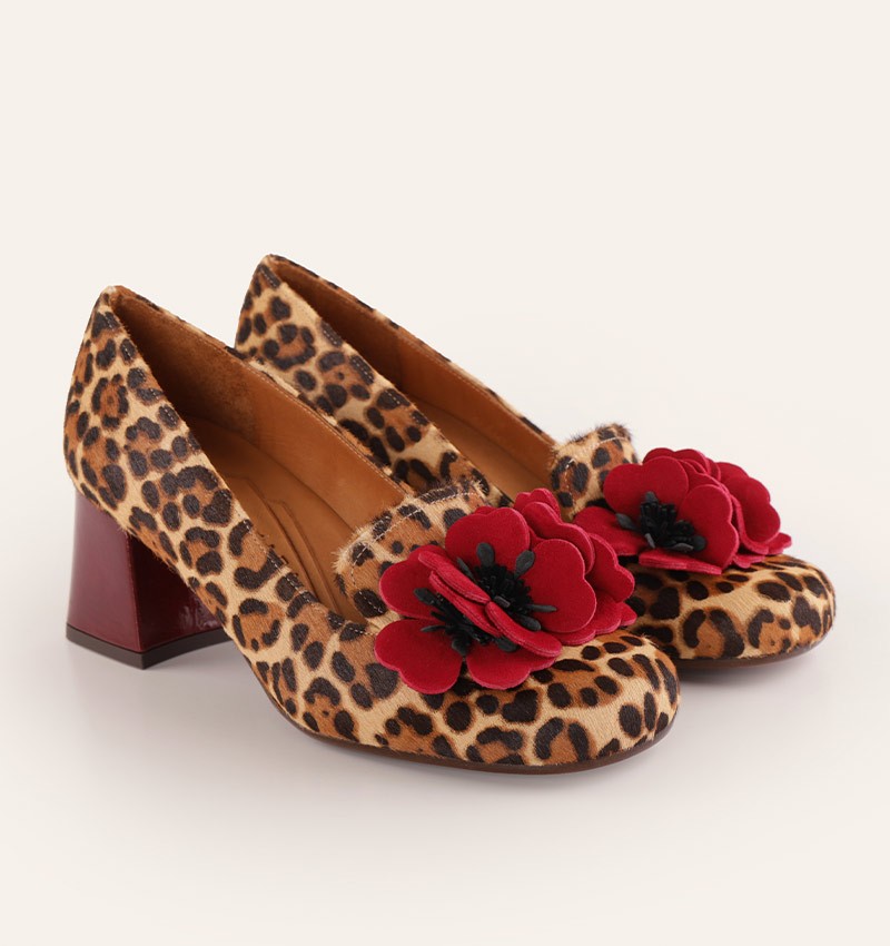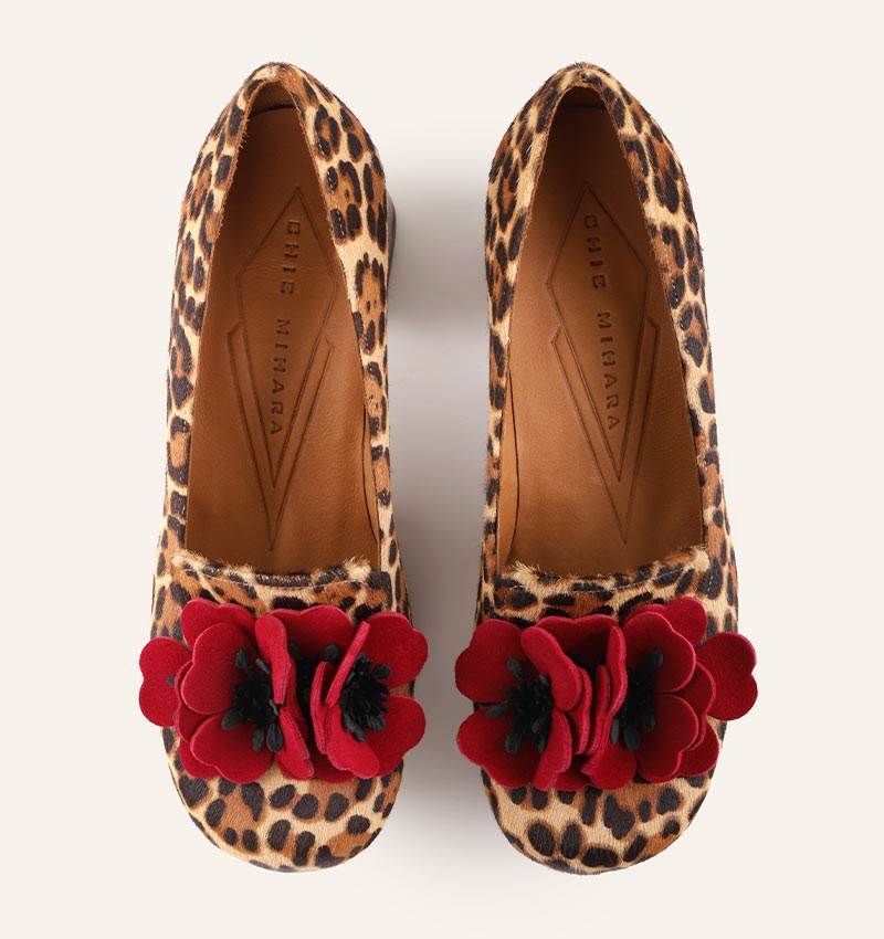 Skóra z nadrukiem w panterkę. Podeszwa skórzana z antypoślizgową gumową częścią na spodzie