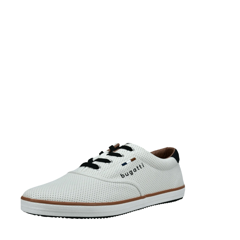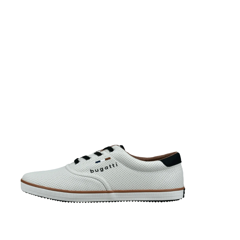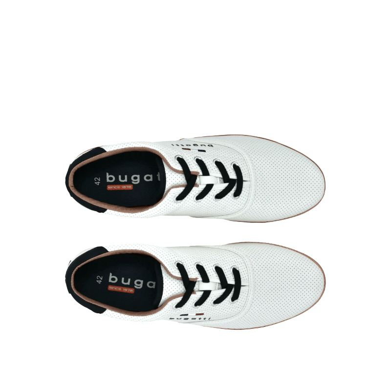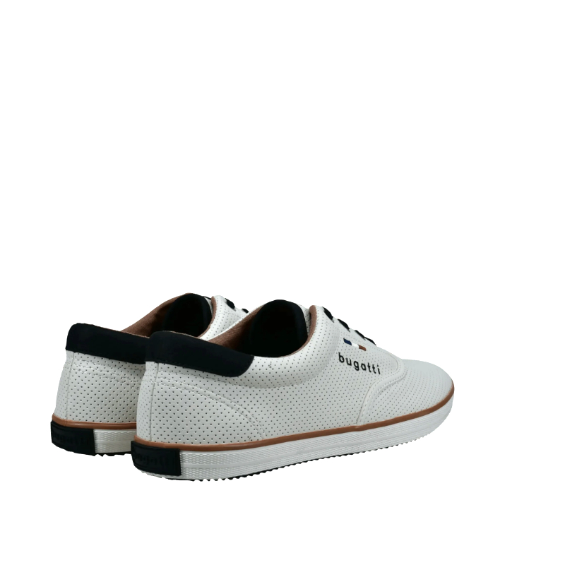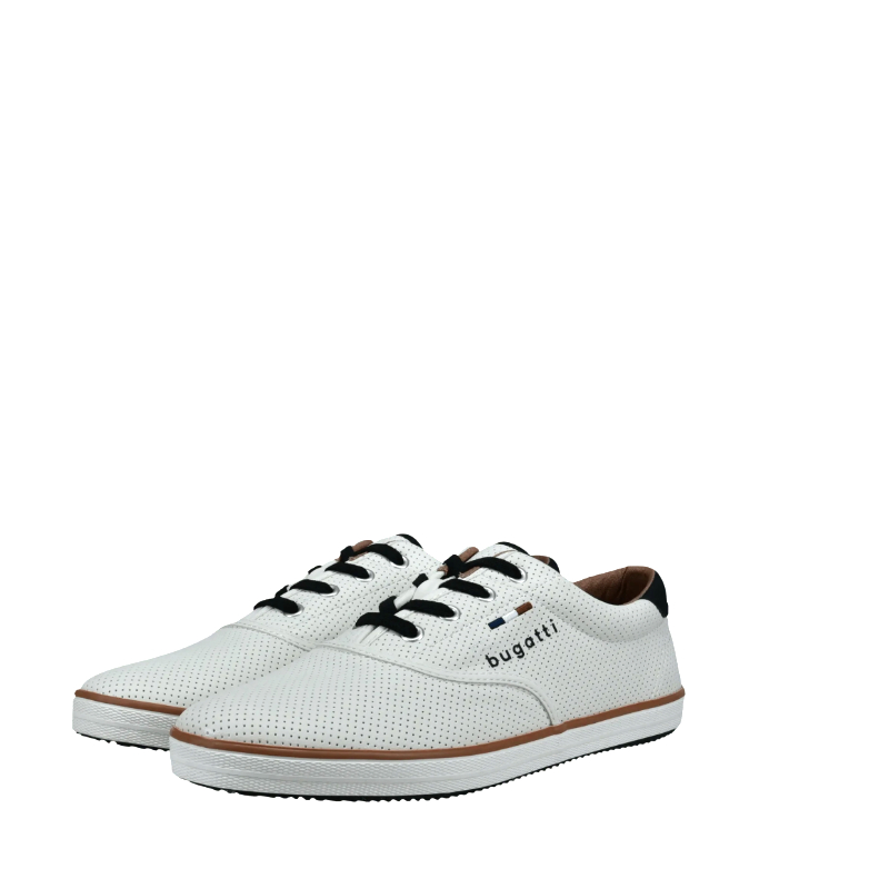 Te sneakersy o czystym, minimalistycznym designie wyróżniają się stonowaną, swobodną elegancją. Perforowana faktura nie tylko poprawia oddychalność, ale także dodaje nowoczesnego charakteru Twoim codziennym stylizacjom. Klasyczny biały kolor uzupełniają subtelne detale, takie jak kontrastujący czarny akcent na pięcie i kultowe logo Bugatti. Idealne na luźne weekendy, miejskie wycieczki, a nawet na swobodny piątek w biurze, oferują wygodne dopasowanie i swobodny styl. Stworzone, aby dotrzymać kroku Twojemu stylowi życia.