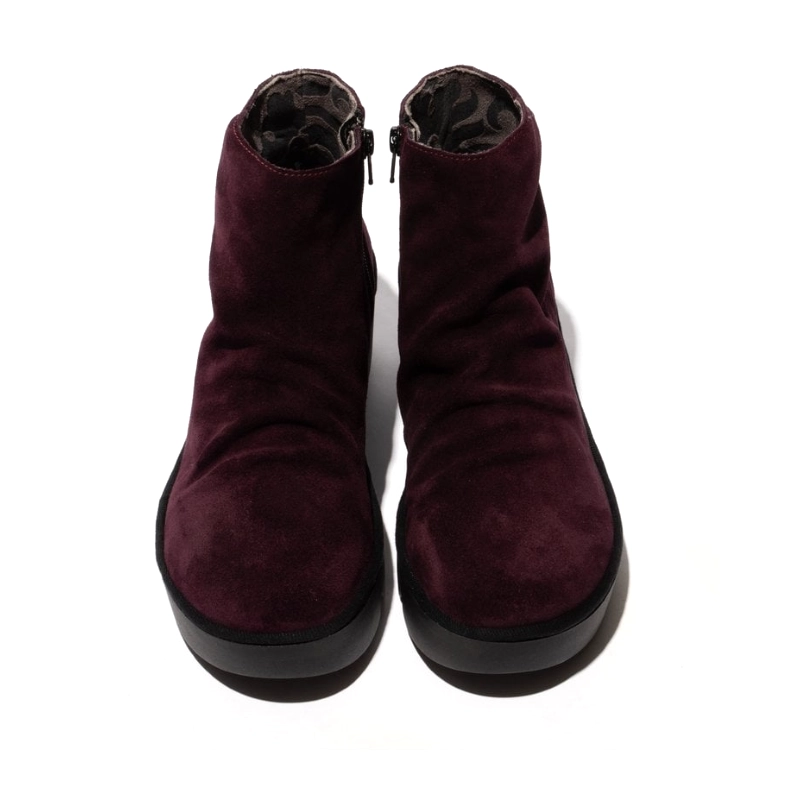 Model Fly London Tulp592 Purple to botki o wyjątkowo nowoczesnym charakterze, łączące komfort i niebanalny styl. Wykonane z miękkiego zamszu w odcieniu głębokiego burgundu, wyróżniają się marszczoną cholewką i grubą, elastyczną platformą, która zapewnia wygodę i świetną amortyzację. Zamek po wewnętrznej stronie ułatwia zakładanie, a charakterystyczna dla marki podeszwa z wycięciem dodaje całości futurystycznego wyrazu. To idealny wybór dla kobiet ceniących niepowtarzalny design i wygodę na co dzień.