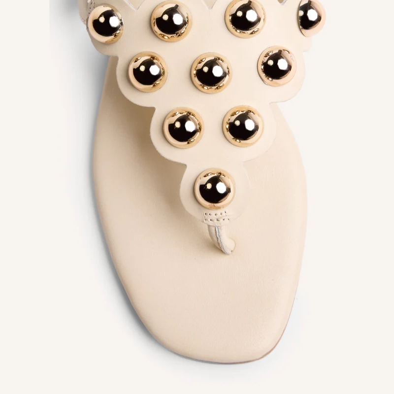 Płaskie, skórzane sandały w stylu greckim z ćwiekami. Posiadają regulowane paski przy kostce i wyściełaną wkładkę. Wysokość obcasa: 1,5 cm. Cholewka, podszewka i wkładka wykonane ze skóry. Elastyczna, gumowa podeszwa.