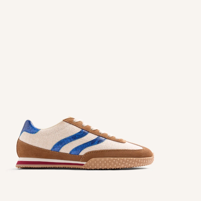 Trampki ze skóry lnianej i zamszowej. Kontrastowe kolory i faktury. Granulowana podeszwa. Posiadają wyściełaną, wyjmowaną wkładkę. Wysokość platformy: 2 cm. Możliwe różnice w kolorze skóry lub wykończeniu między obiema stopami odzwierciedlają autentyczność rzemieślniczego procesu i wykorzystania skór naturalnych. Cholewka ze skóry, lnu i poliuretanu. Oddychająca poliestrowa podszewka i wkładka. Lekka podeszwa środkowa z pianki EVA. Elastyczna gumowa podeszwa zewnętrzna.