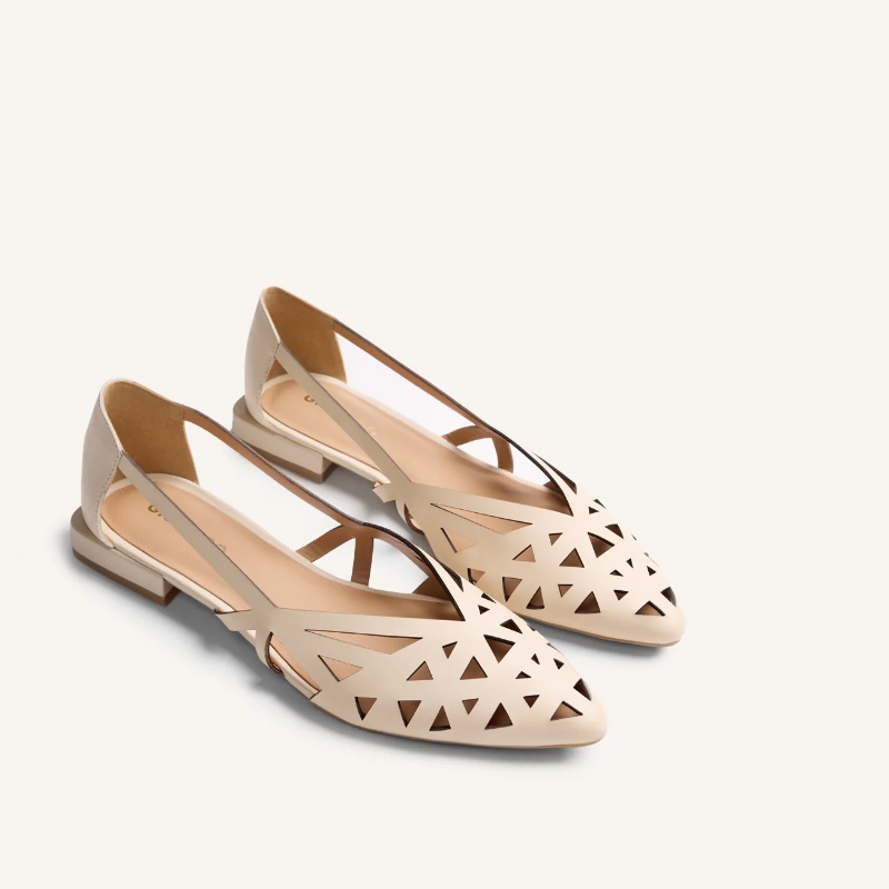 Skórzane balerinki z wycięciami. Nosek w szpic. Amortyzowana wkładka. Wysokość obcasa: 1,5 cm. Cholewka i wkładka ze skóry. Podszewka ze skóry i poliuretanu. Elastyczna podeszwa z tworzywa TPR.