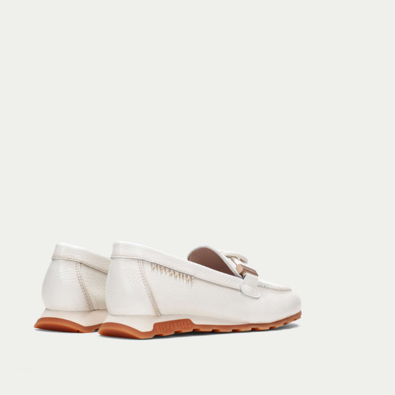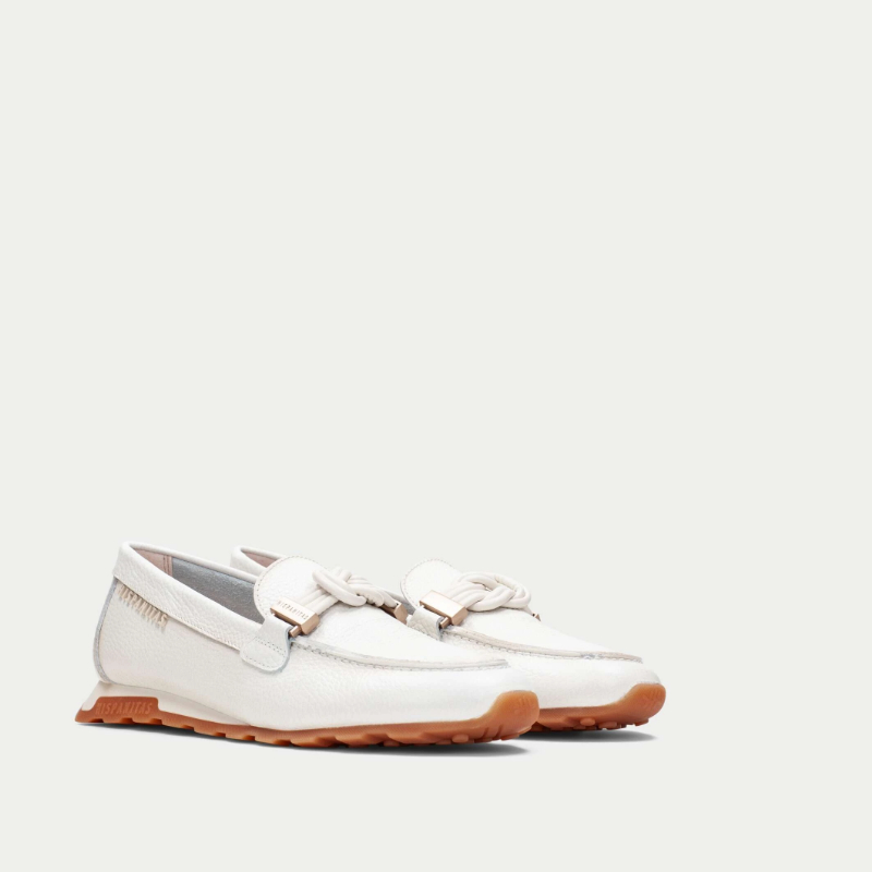 Wsuwane mokasyny w stylu retro, sznurowane z marynarskim motywem na podbiciu. Obcas o wysokości 2 cm z ćwiekami. Tylna część z odsłoniętym palcem dla dynamicznego i stylowego wyglądu. Wykonane ze skóry. Wyściółka wykonana z materiału pochodzenia zwierzęcego, w 100% oddychająca i termoregulująca. W komplecie wyjmowana, anatomiczna wkładka. Technologia Triflow: potrójna amortyzacja w obszarze stopy pochłania wstrząsy i zapewnia amortyzację podczas chodzenia. Wysokość: 2 cm.