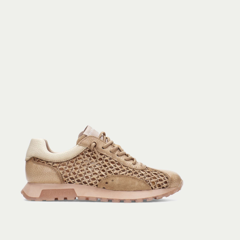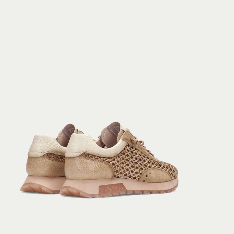 Sznurowane buty sportowe. Elastyczne sznurowadła ułatwiają zakładanie i zdejmowanie. Podeszwa o wysokości 2,5 cm z podwyższoną częścią TR z logo marki nadaje butom wyjątkowy i charakterystyczny wygląd. Przeprojektowany wzór bieżnika dla zwiększenia lekkości i stabilności. Wykonane ze skóry połączonej z rafią z Marrakeszu. Wyściółka z materiałów niepochodzących od zwierząt, w 100% oddychająca i termoregulująca. Z wyjmowaną, anatomiczną wkładką. Technologia Triflow: potrójna amortyzacja w obszarze stopy. Wysokość: 2,5 cm.