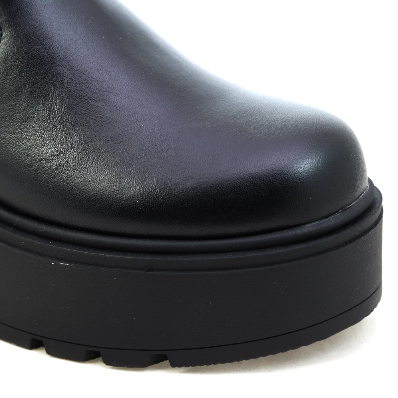 Model Maciejka A7161-01/00-7 to nowoczesne czarne botki damskie na masywnej platformie, które łączą minimalistyczny design z miejskim charakterem. Wykonane z naturalnej skóry licowej, mają gładką, lekko błyszczącą cholewkę, która efektownie układa się na nodze. Elastyczna góra ułatwia dopasowanie i zapewnia komfort noszenia, a suwak z tyłu dodaje całości modowego pazura i praktyczności. Gruba, lekka podeszwa typu platforma gwarantuje stabilność i wygodę, jednocześnie optycznie wydłużając sylwetkę. To doskonały wybór dla kobiet, które lubią odważny, nowoczesny styl z nutą elegancji.
