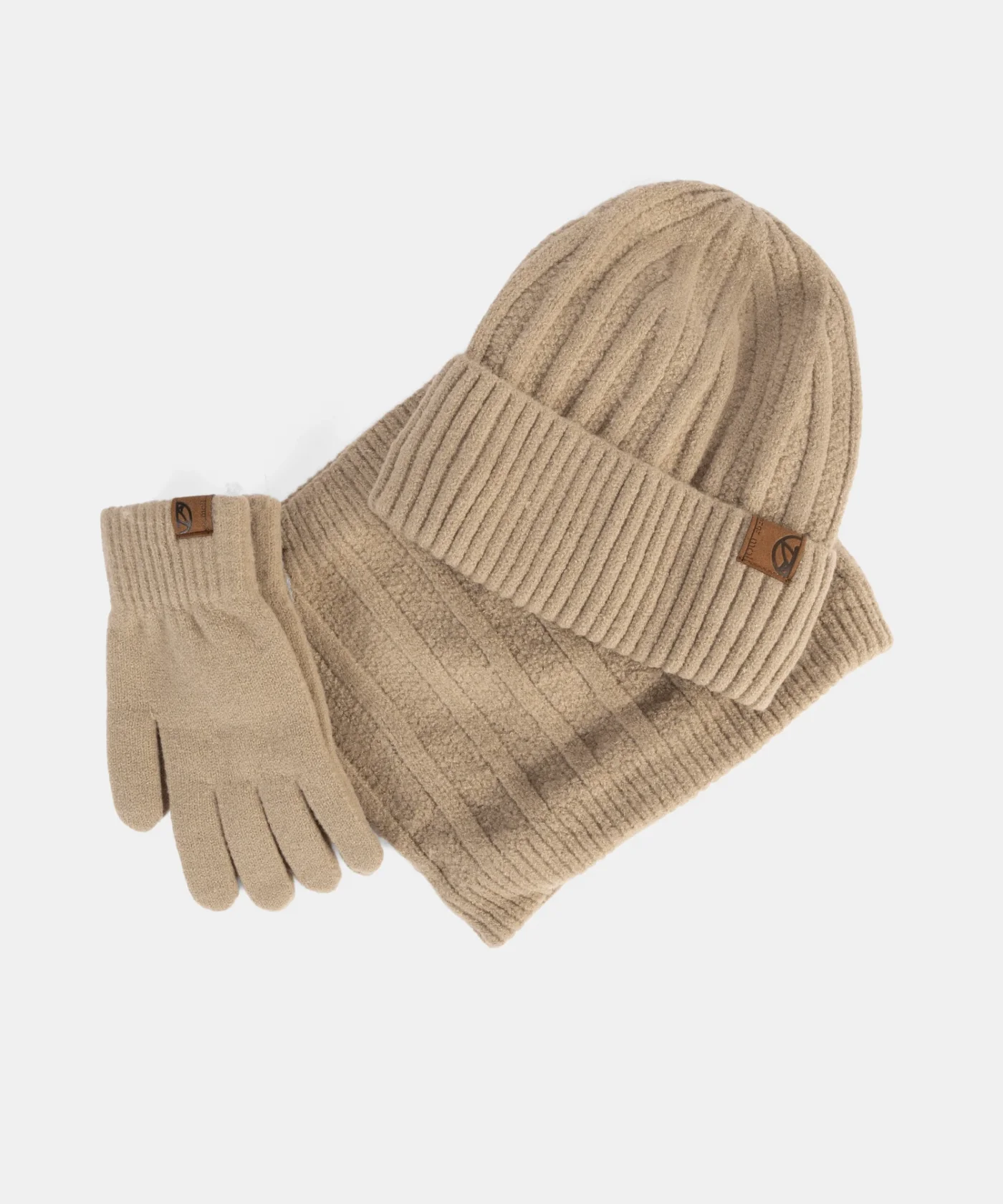 252851 Beige Zestaw czapka, rękawiczki i komin