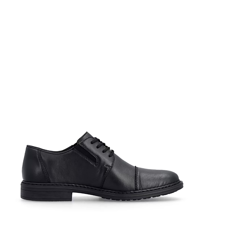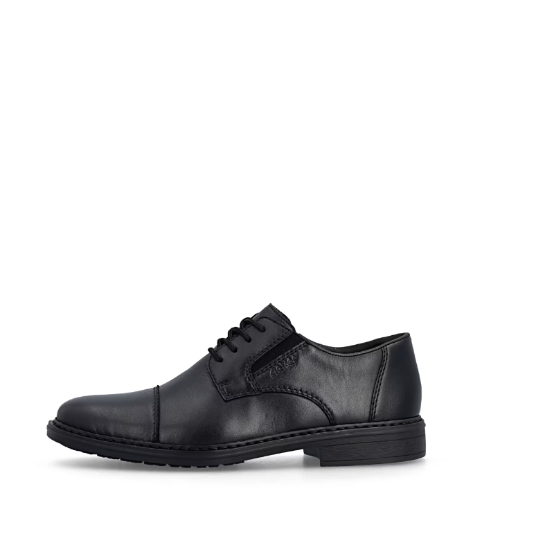 Klasyka w nowoczesnym stylu od marki RIEKER – te męskie półbuty w eleganckim, czarnym kolorze to idealny wybór dla mężczyzn ceniących wygodę i ponadczasowy design. Delikatne przeszycia nadają butom dyskretny wygląd, który z łatwością można zestawić z formalnymi i codziennymi ubraniami. Logo RIEKER podkreśla charakterystyczny styl marki i odzwierciedla jej nacisk na jakość wykonania. Sznurowanie w połączeniu z elastycznymi gumkami po bokach podbicia umożliwia łatwe zakładanie i dopasowanie do kształtu stopy, zapewniając maksymalny komfort. Skórzana wkładka gwarantuje komfort chodzenia, a szerszy krój zapewnia wystarczająco dużo miejsca dla naturalnego ruchu stopy. Lekka i elastyczna podeszwa z amortyzacją niweluje wstrząsy podczas chodzenia i przyczynia się do ogólnego komfortu. Ten model to idealne połączenie stylu, wygody i funkcjonalności – idealny towarzysz w pracy i w czasie wolnym.