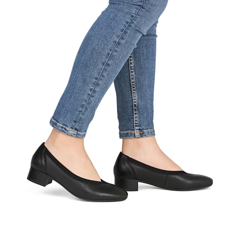 Te skórzane czółenka RIEKER w klasycznej czerni to kwintesencja elegancji i wygody. Ich prosty i ponadczasowy design pozwala na łatwe łączenie ich z formalnymi i codziennymi stylizacjami. Niski obcas dodaje kobiecego uroku, nie rezygnując przy tym ze stabilności, dzięki czemu idealnie nadają się do noszenia przez cały dzień, a skórzana wkładka zapewnia komfort na każdym kroku. Czółenka te to idealny wybór dla kobiet, które chcą wyglądać stylowo i jednocześnie czuć się komfortowo – w pracy, na spotkaniach towarzyskich i na co dzień.