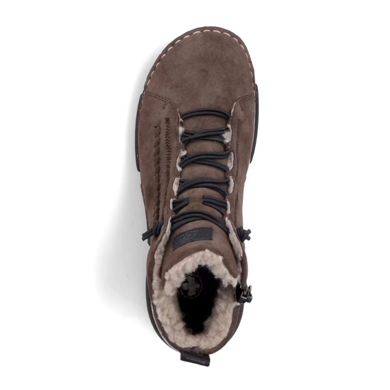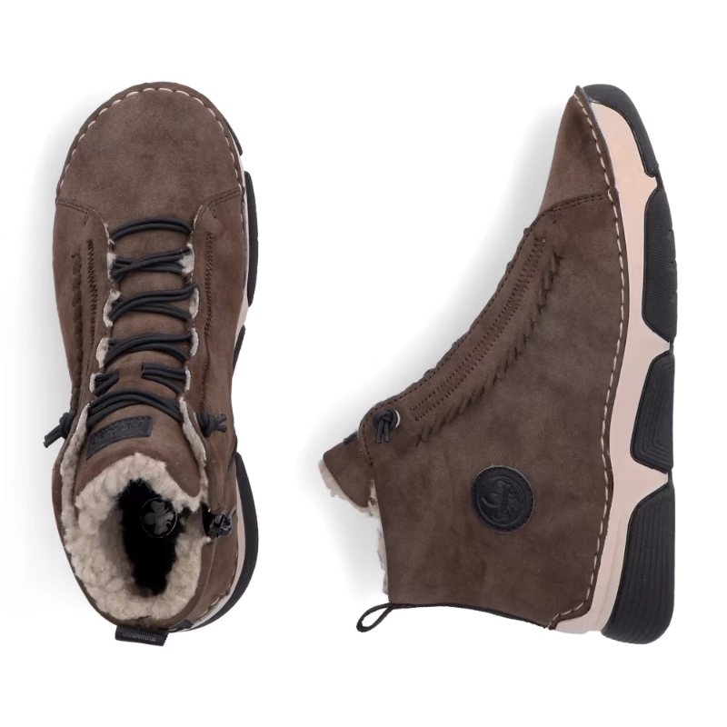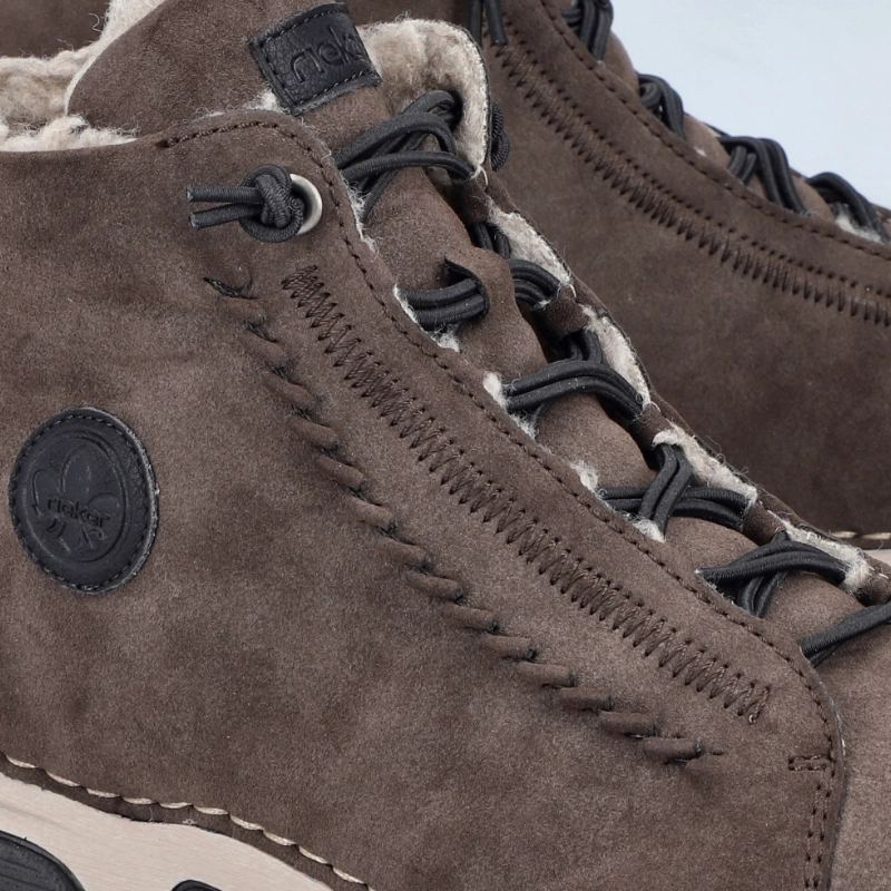 Te buty RIEKER w ciekawym brązowym kolorze i zdobione na podbiciu to idealny wybór dla kobiet poszukujących stylowego i wygodnego obuwia. Łatwość zakładania zapewnia zamek błyskawiczny od wewnątrz oraz gumka wszyta zamiast sznurowadeł. Konstrukcja podeszwy o unikalnym połączeniu kolorów nie tylko wyróżnia się estetycznie, ale także zapewnia stabilność i wygodę podczas chodzenia dzięki technologii Antistress. Te ocieplane buty będą towarzyszyć Ci w wolnym czasie i w drodze do pracy swoim wyglądem i maksymalnym komfortem.