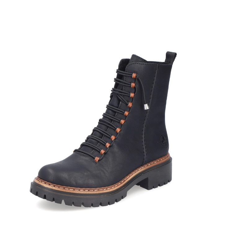 Te botki w uniwersalnym, czarnym kolorze to przykład połączenia nowoczesnego designu z praktycznymi elementami, które docenisz w codziennym noszeniu. Cholewka wykonana z wysokiej jakości materiału syntetycznego prezentuje się ponadczasowo dzięki czarnemu wzornictwu, które uzupełnia ozdobne sznurowanie na elastycznej gumce, podkreślające modny wygląd i zapewniające łatwe dopasowanie do kształtu stopy. Praktyczny zamek błyskawiczny z boku to funkcjonalny element gwarantujący wygodne i szybkie zakładanie i zdejmowanie. Po założeniu powita Cię tekstylna wyściółka, która ma zapewnić ciepło w chłodniejsze dni, a jednocześnie być przyjemna w dotyku. Wytrzymała podeszwa z charakterystycznym antypoślizgowym bieżnikiem zapewnia stabilność podczas chodzenia po różnych nawierzchniach, a także amortyzuje wstrząsy, zapewniając komfort przez cały dzień. Dzięki swobodnemu, a zarazem modnemu designowi buty te idealnie nadają się na co dzień – do pracy, na zajęcia rekreacyjne, ale także na spacery po mieście w chłodniejsze dni. Buty RIEKER to synonim praktyczności, wygody i nowoczesnego designu, co doceni każda kobieta ceniąca solidne i stylowe obuwie.