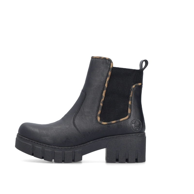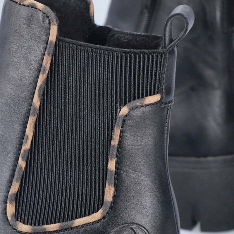 Ten model botków RIEKER łączy w sobie wszystko, czego oczekuje nowoczesna kobieta – imponujący design, maksymalny komfort i praktyczne detale. Czarna cholewka ma uniwersalny wygląd, a wzorzyste wykończenie z elastyczną wstawką nadaje butom oryginalnego akcentu, a jednocześnie dopasowuje się do kształtu stopy, zapewniając komfort przy każdym ruchu. Zakładanie butów ułatwia praktyczny boczny zamek błyskawiczny. Wewnątrz znajduje się miękka, wyjmowana wkładka, która zapewnia wyjątkowy komfort, wspomaga naturalny chód i umożliwia łatwą konserwację lub wymianę w zależności od indywidualnych potrzeb. Wyższa, stabilna podeszwa z wysokim bieżnikiem podkreśla nowoczesny wygląd, a jednocześnie gwarantuje bezpieczeństwo chodzenia. Dzięki technologii amortyzacji odciąża stawy i stopy, dzięki czemu nawet po długim dniu nie poczujesz zmęczenia. Botki RIEKER to idealny towarzysz na co dzień – do pracy, na wakacje i do miasta. Dają pewność, że poczujesz się komfortowo i stylowo, gdziekolwiek się znajdziesz. Ten model to doskonały dowód na to, że marka RIEKER potrafi łączyć modę i funkcjonalność w jedną całość.