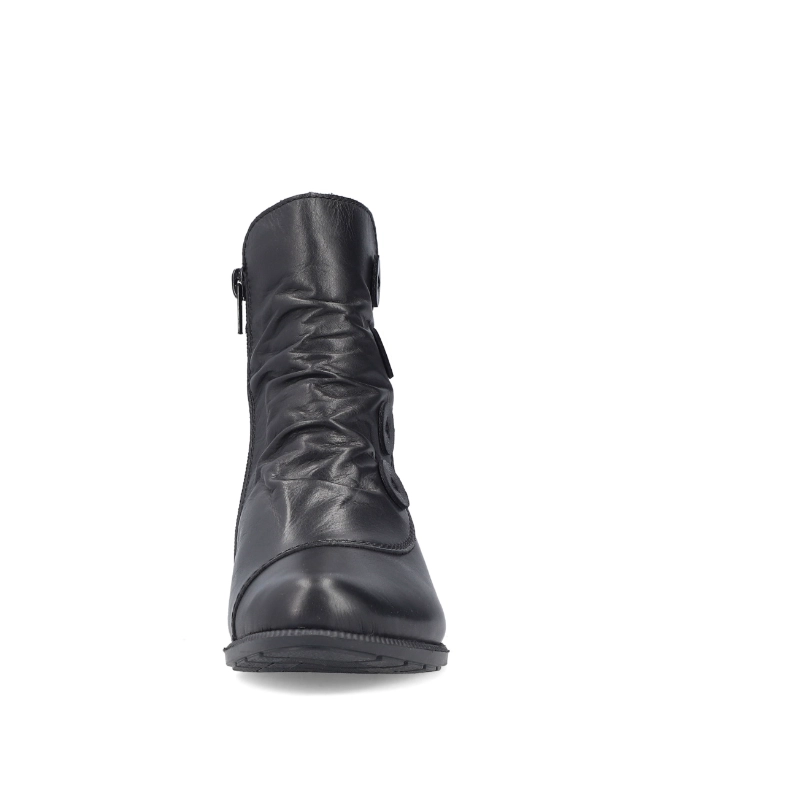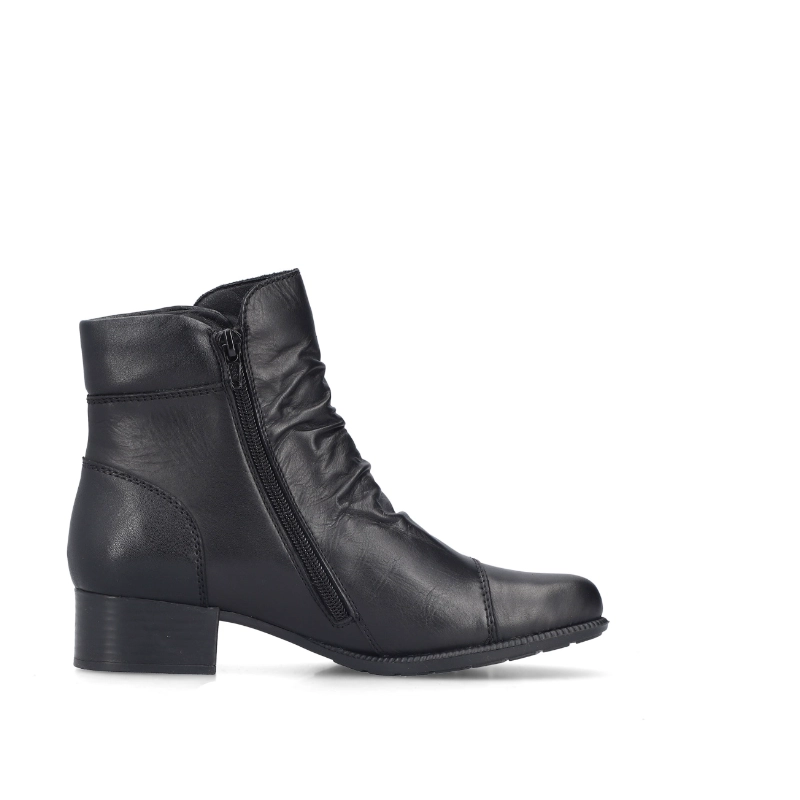 Ten model butów RIEKER to prawdziwa gratka dla każdej miłośniczki mody! Czarna cholewka w połączeniu z oryginalnymi zdobieniami i delikatnym marszczeniem w okolicy podbicia nadaje butom oryginalnego charakteru. Zamek błyskawiczny po wewnętrznej stronie ułatwia zakładanie. Wnętrze wykonano z miękkiej, tekstylnej wkładki, która zapewnia wygodę przez cały dzień, a stabilna podeszwa na niskim obcasie, dzięki technologii Antistress, przyjemnie amortyzuje wstrząsy i przyczynia się do komfortu każdego kroku. Ten stylowy model idealnie uzupełnisz torebką lub plecakiem z naszej oferty – idealny wybór na miejskie spacery lub spotkania z przyjaciółmi.