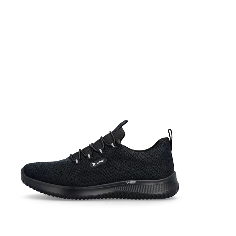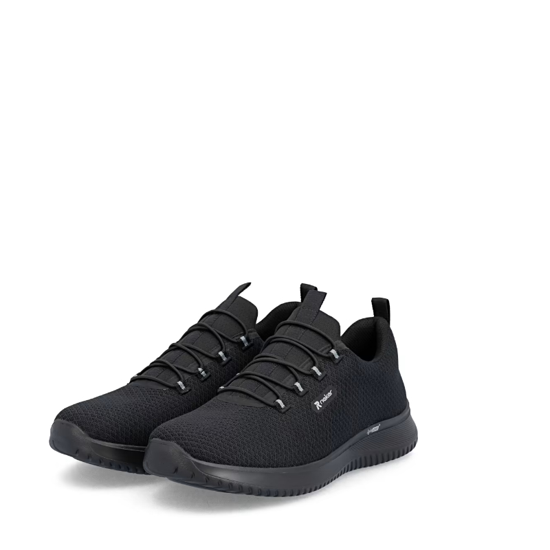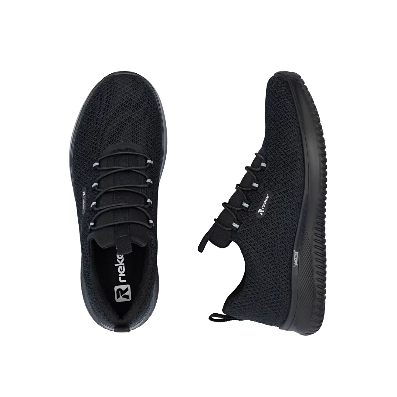 Te sneakersy RIEKER to idealny wybór dla każdego nowoczesnego mężczyzny, który ceni ponadczasowy design i wygodę. Czarna, tekstylna cholewka nie tylko prezentuje się uniwersalnie i ponadczasowo, co pozwala na łatwe łączenie z różnymi stylizacjami, ale także zapewnia przewiewność i wygodę przez cały dzień. Logo marki stanowi stylowy detal, który idealnie uzupełnia uniwersalną, czarną, tekstylną cholewkę. Zamiast klasycznego sznurowania, model wyposażono w elastyczną gumkę, która umożliwia łatwe i szybkie zakładanie, a jednocześnie dopasowuje się do kształtu stopy. Miękka, tekstylna wkładka zapewnia komfort na każdym kroku i przyjemne uczucie podczas całodziennego noszenia. Elastyczna podeszwa amortyzuje wstrząsy i gwarantuje stabilny i bezpieczny krok, zarówno w mieście, jak i podczas aktywności. Połączenie lekkości, wygody i nowoczesnego stylu sprawia, że ​​te sneakersy stanowią doskonały dodatek do każdej męskiej garderoby, nadając się zarówno do noszenia na co dzień, jak i do aktywnego stylu życia. Idealne połączenie nowoczesnego wyglądu i maksymalnego komfortu dzięki funkcjonalnym technologiom to buty sportowe RIEKER.