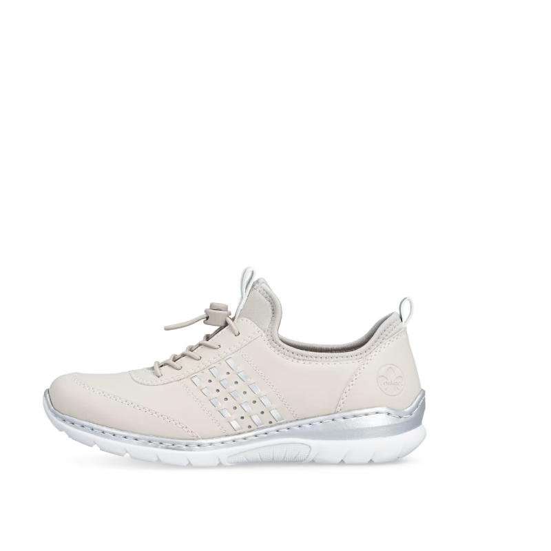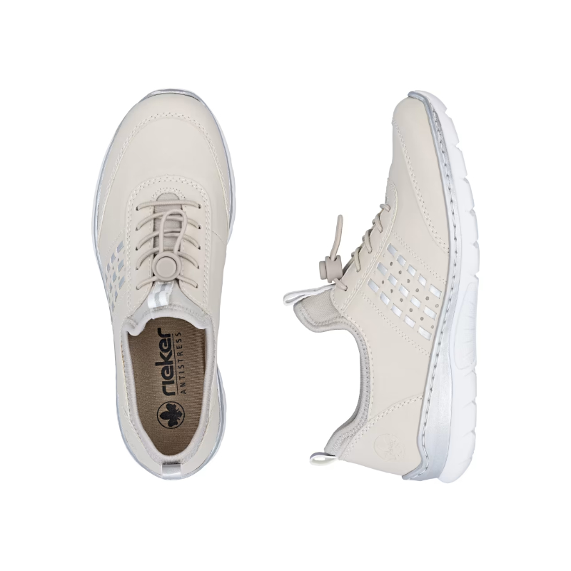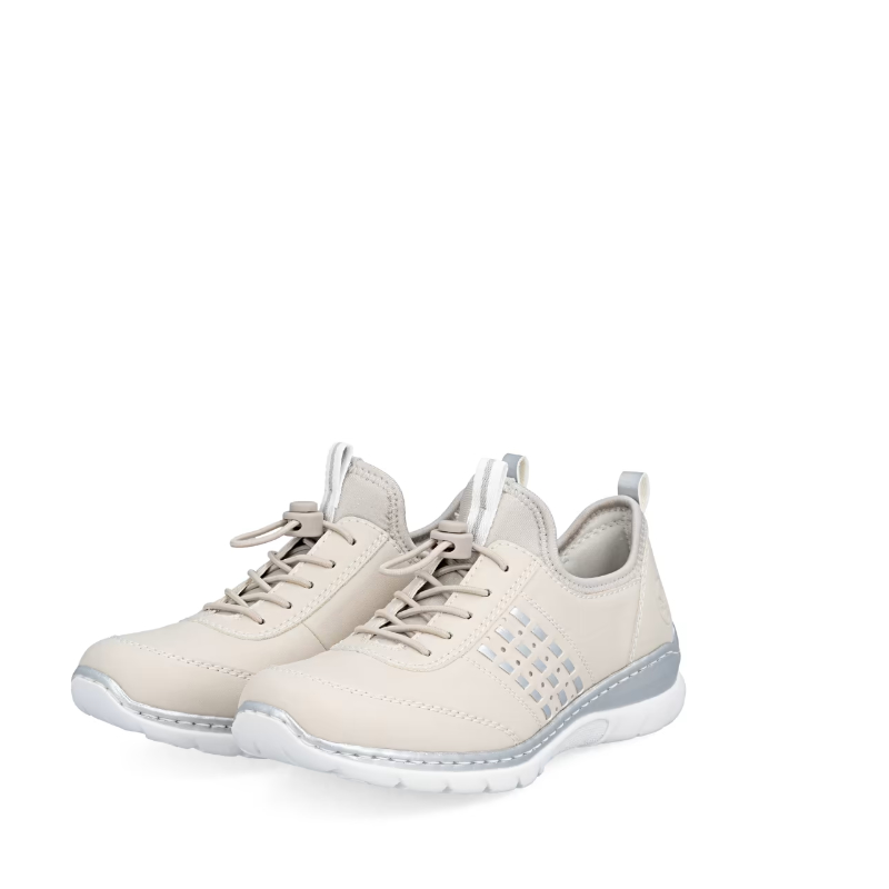 Te stylowe buty RIEKER to ucieleśnienie modnego wyglądu, wygody i praktycznych rozwiązań charakterystycznych dla tej marki. Już na pierwszy rzut oka przyciągają wzrok wyrafinowaną cholewką, która wyróżnia się atrakcyjnym, bocznym zdobieniem oraz dyskretnym nadrukowanym logo, harmonijnie dopełnia całościowy design modelu. Cholewka wykonana jest z elastycznego materiału, który naturalnie dopasowuje się do kształtu stopy, a gumka z elementem ściągającym pełni funkcję głównie dekoracyjną, nadając butom wyrazisty, modny akcent. Wewnątrz znajduje się wygodna, tekstylna wkładka z pianki memory foam, która jest jedną z największych zalet tego modelu i dopasowuje się do kształtu stopy. Podeszwa wykonana w technologii RIEKER Antistress jest lekka, elastyczna i skutecznie amortyzuje wstrząsy podczas chodzenia. Dzięki temu odciąża stawy i zapewnia przyjemne uczucie na każdym kroku, co docenisz szczególnie podczas aktywnego dnia lub długich spacerów. Dzięki uniwersalnemu designowi model ten z łatwością dopasuje się zarówno do odzieży sportowej, jak i casualowej, dodając stylowego akcentu Twojej stylizacji.