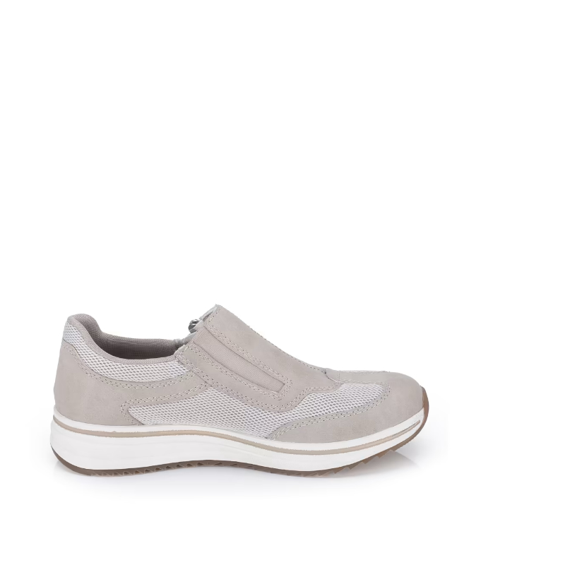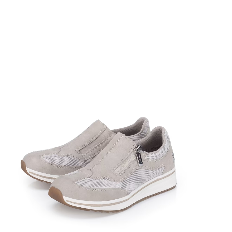 Ulegnij urokowi tych sneakersów RIEKER, które od pierwszego wejrzenia przyciągną Twoją uwagę pomysłowym połączeniem materiałów, uzupełnionym logo marki. Dynamiczny design prezentuje się nowocześnie i pewnie, dzięki czemu model ten będzie dominować w każdej stylizacji. Praktyczny zamek błyskawiczny w okolicy podbicia w połączeniu z elastyczną gumką po drugiej stronie zapewnia szybkie i wygodne zakładanie, a jednocześnie pozwala na idealne dopasowanie do kształtu stopy bez zbędnego ucisku. Wyjmowana, miękka wkładka z oddychającego materiału zapewnia maksymalny komfort i wsparcie podczas całodziennego noszenia. Pewny krok gwarantuje elastyczna podeszwa, która naturalnie odzwierciedla ruch stopy i skutecznie amortyzuje wstrząsy podczas chodzenia. Te sneakersy to idealny wybór dla kobiet, które cenią sobie modny styl bez kompromisów w kwestii wygody – zarówno w mieście, na spacerze, jak i na co dzień. Idealne połączenie nowoczesnego wyglądu i maksymalnej wygody dzięki funkcjonalnym technologiom to buty sportowe RIEKER.