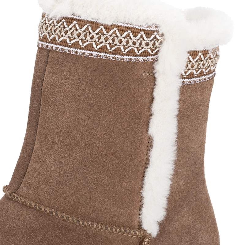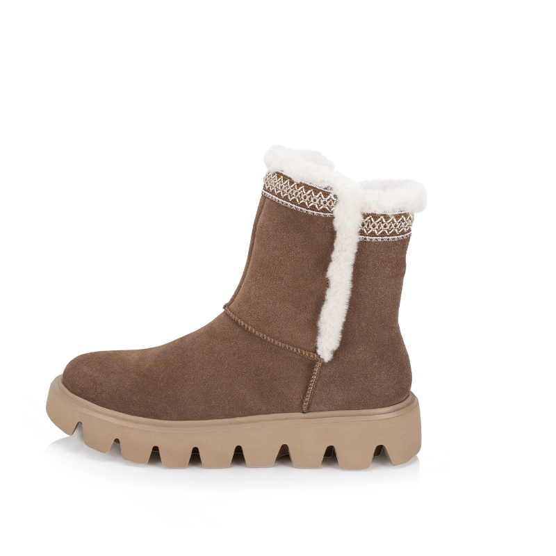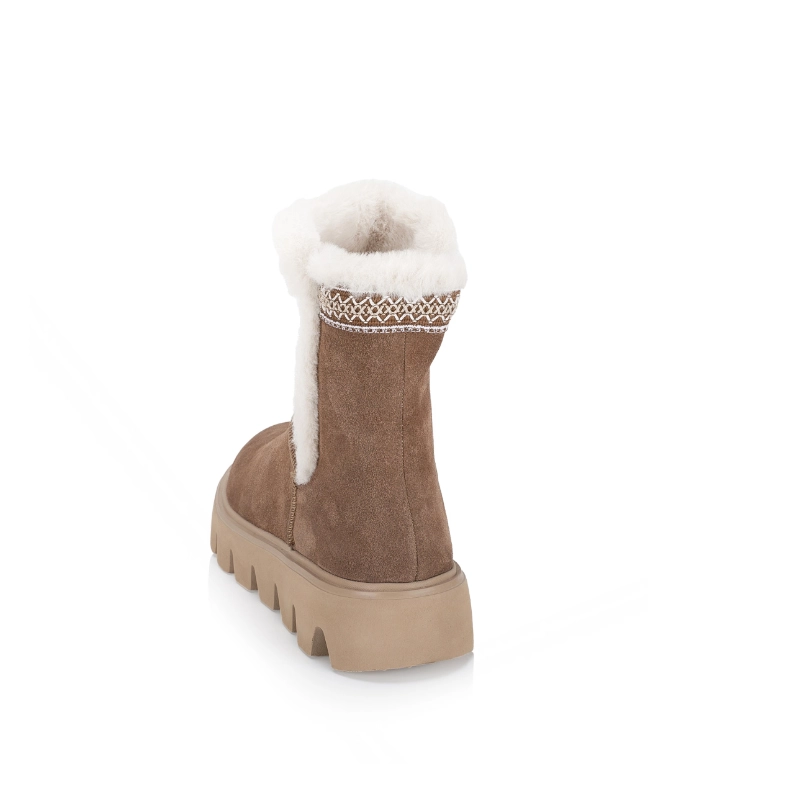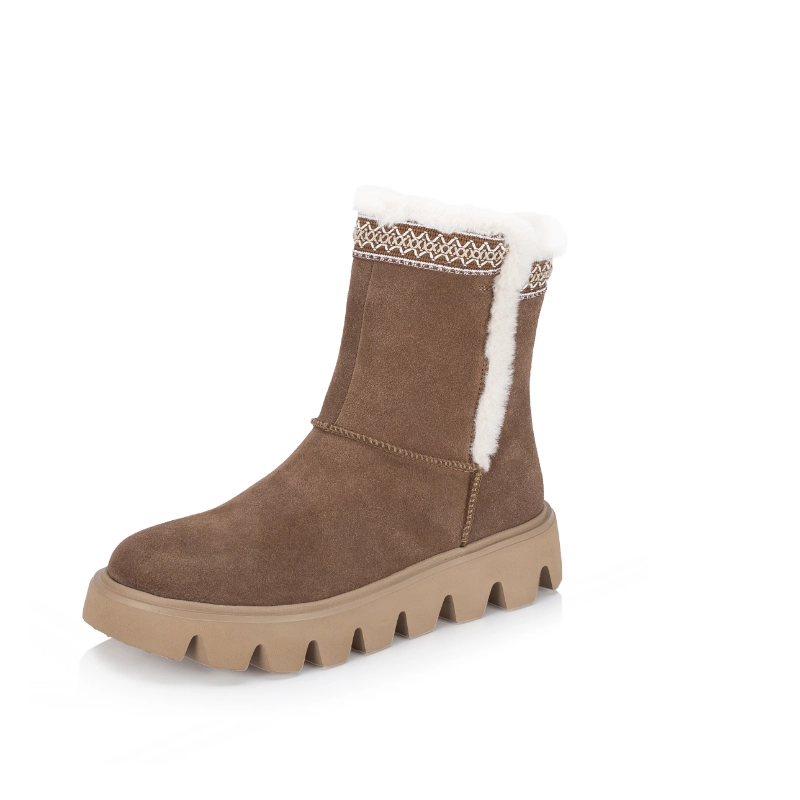 Ten zimowy model RIEKER w kolorze brązowym to idealne połączenie praktyczności i stylowego designu. Skórzana cholewka ozdobiona charakterystycznymi przeszyciami z jasnej nici nadaje butom niepowtarzalny wygląd, który podkreśla tekstylne wykończenie. Wewnętrzna ciepła wyściółka z owczej wełny zapewni ciepło stopom nawet w chłodne, zimowe dni, a boczny zamek błyskawiczny ułatwi zakładanie. Praktycznym dodatkiem jest wyjmowana wkładka, która nie tylko ułatwia konserwację i wymianę, ale także zapewnia miękkość, zapewniając komfort na każdym kroku. Wyższa, stabilna podeszwa z charakterystycznym wzorem gwarantuje doskonały komfort. Ten model to doskonały wybór dla kobiet, które preferują funkcjonalne buty o gustownym designie – zarówno do miasta, pracy, jak i na zimowe spacery. Idealne połączenie nowoczesnego wyglądu i maksymalnego komfortu dzięki funkcjonalnym technologiom to buty sportowe RIEKER.