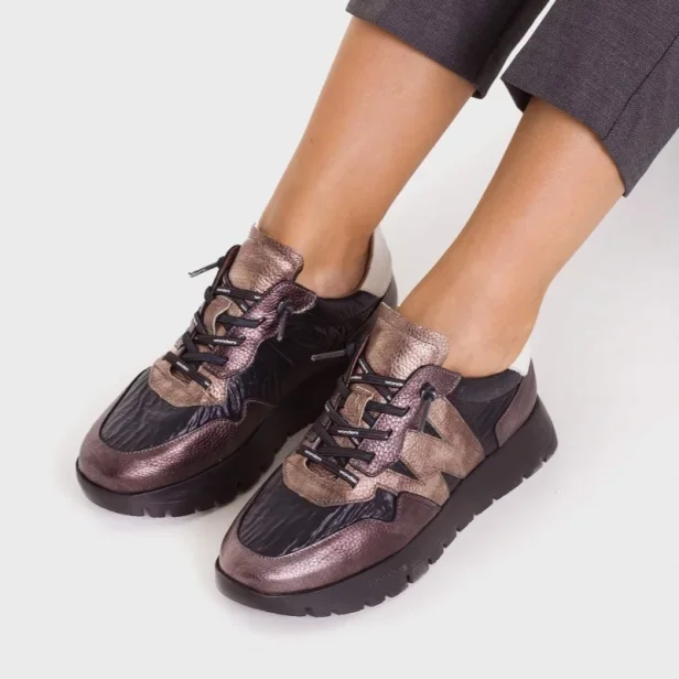Te sneakersy RIEKER ozdobią Twoje stopy imponującym wyglądem. Czarna cholewka ozdobiona jest ciekawą aplikacją z wzorem i metalicznym kolorem z tyłu. Nie tylko unikalny design charakteryzuje te buty, ale także praktyczne elementy, takie jak sznurowanie zapewniające idealne dopasowanie do kształtu stopy oraz wyjmowana, przyjemnie miękka wkładka zapewniająca całodzienny komfort. Wyższa podeszwa oferuje stabilne podparcie i amortyzuje wstrząsy podczas chodzenia, co docenisz szczególnie podczas dłuższego noszenia. Niezależnie od tego, czy wybierasz się do miasta, do pracy, czy na spacer, te sneakersy zapewnią Ci niezawodne wsparcie i świetny wygląd przez cały dzień. Idealne połączenie nowoczesnego wyglądu i maksymalnego komfortu dzięki funkcjonalnym technologiom to buty sportowe RIEKER.