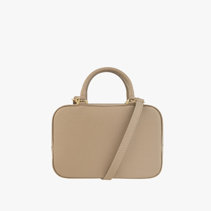 Beżowa torebka damska typu bowling bag z linii RKO to nowoczesna interpretacja klasycznego fasonu o zaokrąglonej, miękkiej sylwetce. Wykonana z połączenia skóry licowej i welurowej, zachwyca subtelną fakturą oraz wyjątkową estetyką, którą podkreślają złote metalowe elementy. Model o średnim rozmiarze jest wygodny i funkcjonalny, idealny do codziennych stylizacji. Wnętrze wykończono podszewką z tkaniny i wyposażono w 2 kieszenie wewnętrzne, pomagające utrzymać porządek. Torebka zapinana jest na zamek, co zapewnia bezpieczeństwo. Dzięki regulowanemu paskowi o długości 125 cm oraz krótkiej rączce, można nosić ją na kilka sposobów – w dłoni, na ramieniu lub crossbody. To ponadczasowy, kobiecy model, który świetnie dopełnia zarówno casualowe, jak i bardziej eleganckie zestawy.
