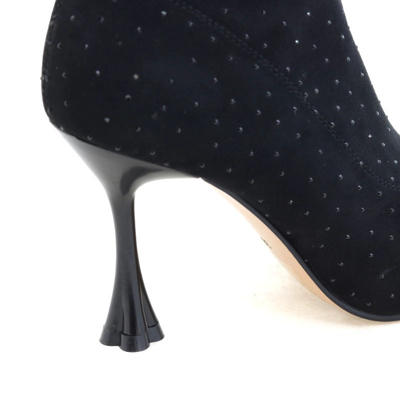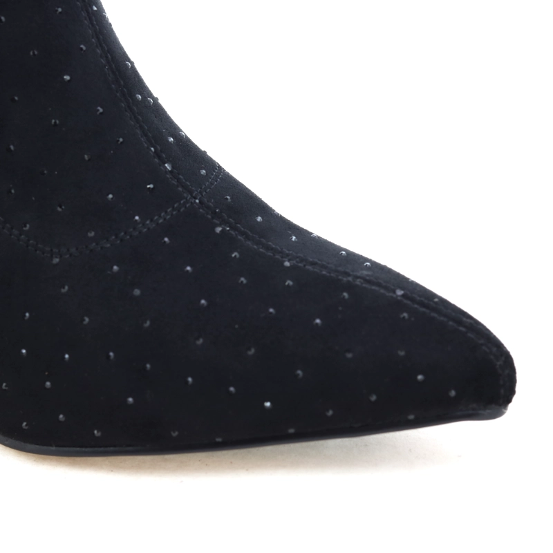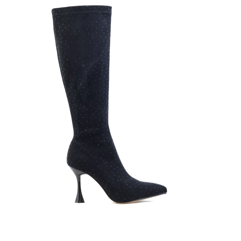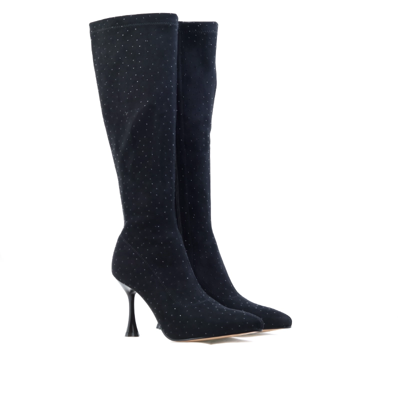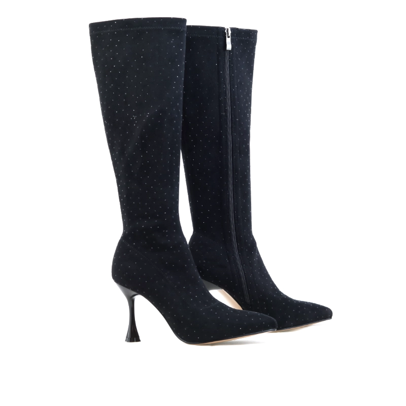 Model S. Barski JC52-883 to eleganckie czarne kozaki damskie o wysmuklonej, dopasowanej cholewce i smukłym obcasie typu szpilka. Subtelnie połyskujące drobne kryształki nadają im wyjątkowo kobiecego i wieczorowego charakteru. Idealne do stylizacji na specjalne okazje – świetnie komponują się z sukienką midi, płaszczem czy eleganckim zestawem zimowym.