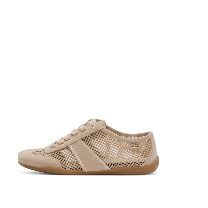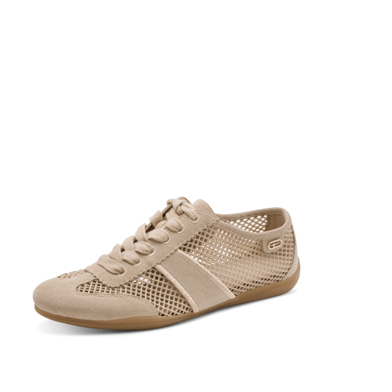 Beżowe półbuty damskie Tamaris to lekki i komfortowy model idealny na cieplejsze dni, wykonany z połączenia miękkiej skóry zamszowej i przewiewnej siateczki, która zapewnia stopom odpowiednią wentylację. Ażurowa struktura nadaje całości letniego charakteru, a klasyczne sznurowanie pozwala na dobre dopasowanie do stopy. Elastyczna, płaska podeszwa w naturalnym odcieniu gwarantuje wygodę podczas codziennego noszenia, a subtelne logo i stonowana kolorystyka sprawiają, że buty świetnie wpisują się w casualowe i miejskie stylizacje, będąc praktycznym, a jednocześnie estetycznym wyborem na co dzień.