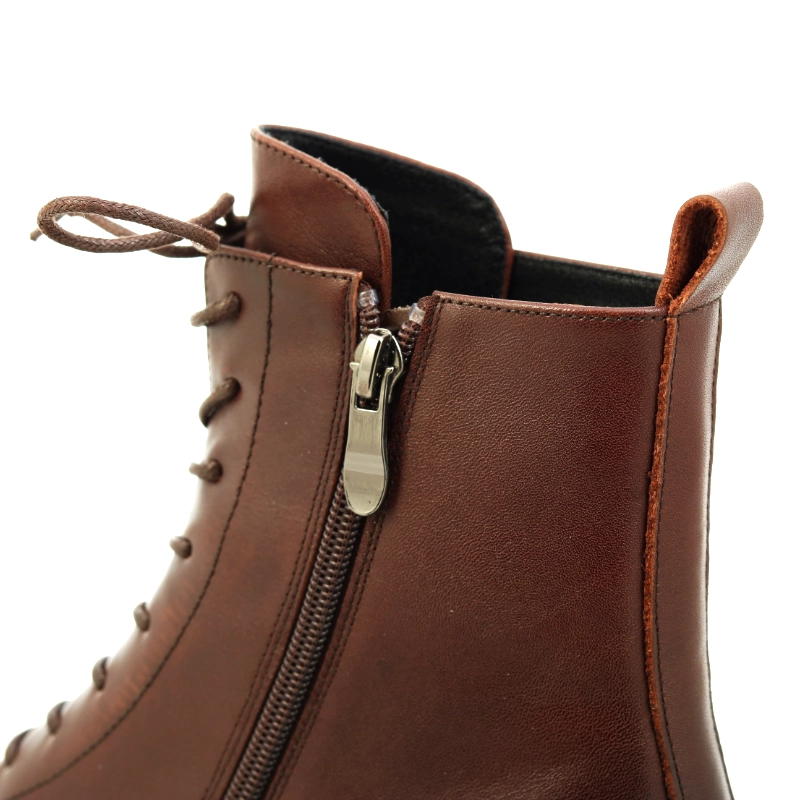 Model Venezia V440-00797-01BRO to klasyczne, brązowe botki damskie wykonane z wysokiej jakości skóry naturalnej, które zachwycają prostotą i elegancją. Gładka cholewka z subtelnymi przeszyciami i tradycyjnym sznurowaniem nadaje im ponadczasowy charakter, a suwak po wewnętrznej stronie ułatwia zakładanie. Fakturowana podeszwa w dopasowanym odcieniu brązu dodaje całości wyrazu i podkreśla solidne wykonanie. Ocieplane wnętrze z miękkiego polaru gwarantuje komfort w chłodniejsze dni, a zaokrąglony nosek i stabilna, płaska podeszwa czynią ten model idealnym wyborem na co dzień, zarówno do jeansów, jak i klasycznych płaszczy.